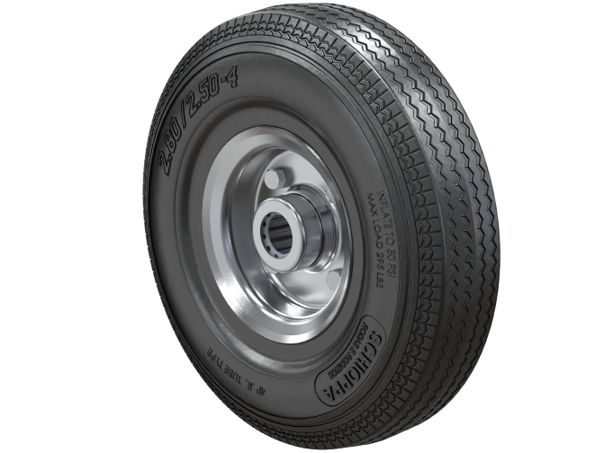 • Roda produzida com aro borracha maciça, com núcleo em chapas de aço carbono estampado, com acabamento zincado. São leves e resistentes, tem rodagem macia silenciosa, e são indicadas para serviços leves em pisos em bom estado. A velocidade de trabalho indicada é até 4km/h.