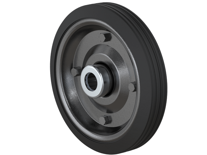 • Roda produzida com aro borracha maciça, com núcleo em chapas de aço carbono estampado, com acabamento zincado. São leves e resistentes, tem rodagem macia silenciosa, e são indicadas para serviços leves em pisos em bom estado. A velocidade de trabalho indicada é até 4km/h.